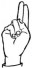 На ћирилици написано ИРИНА КЛЕМЕНОВИЋ састоји се из 15 слова [?]. Исписано ћириличном једноручном азбуком за глувонеме: